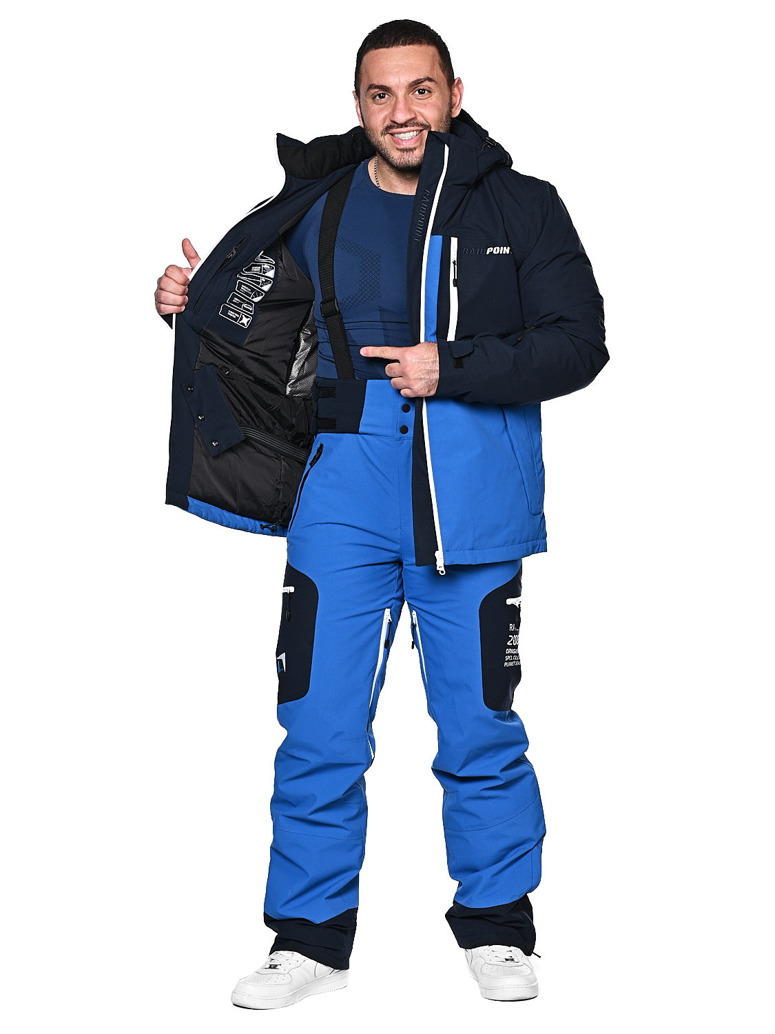 Горнолыжный костюм. Показатели мембраны 10000/10000. Очень практичная и удобная модель с проклеенными швами, водоотталкивающими молниями и регулировкой липучками. Костюм полностью защищает от попадания снега внутрь благодаря своим конструктивным особенностям.