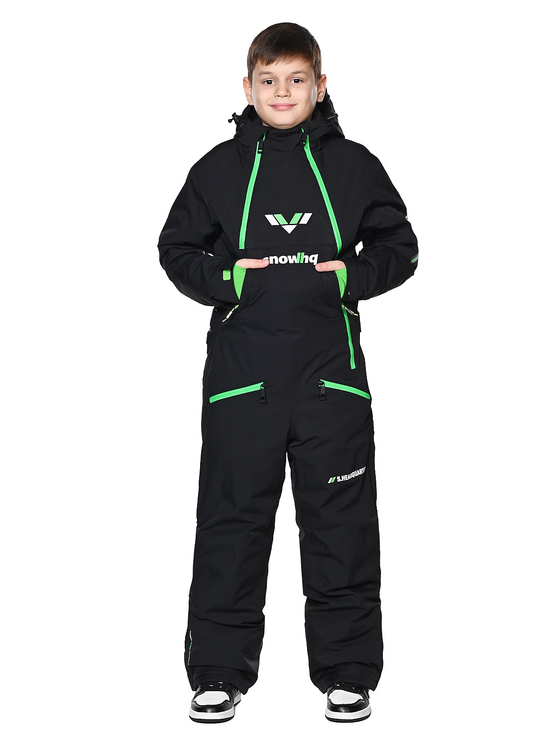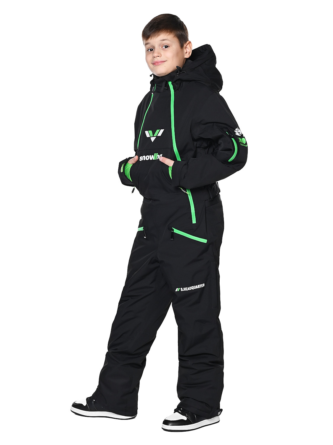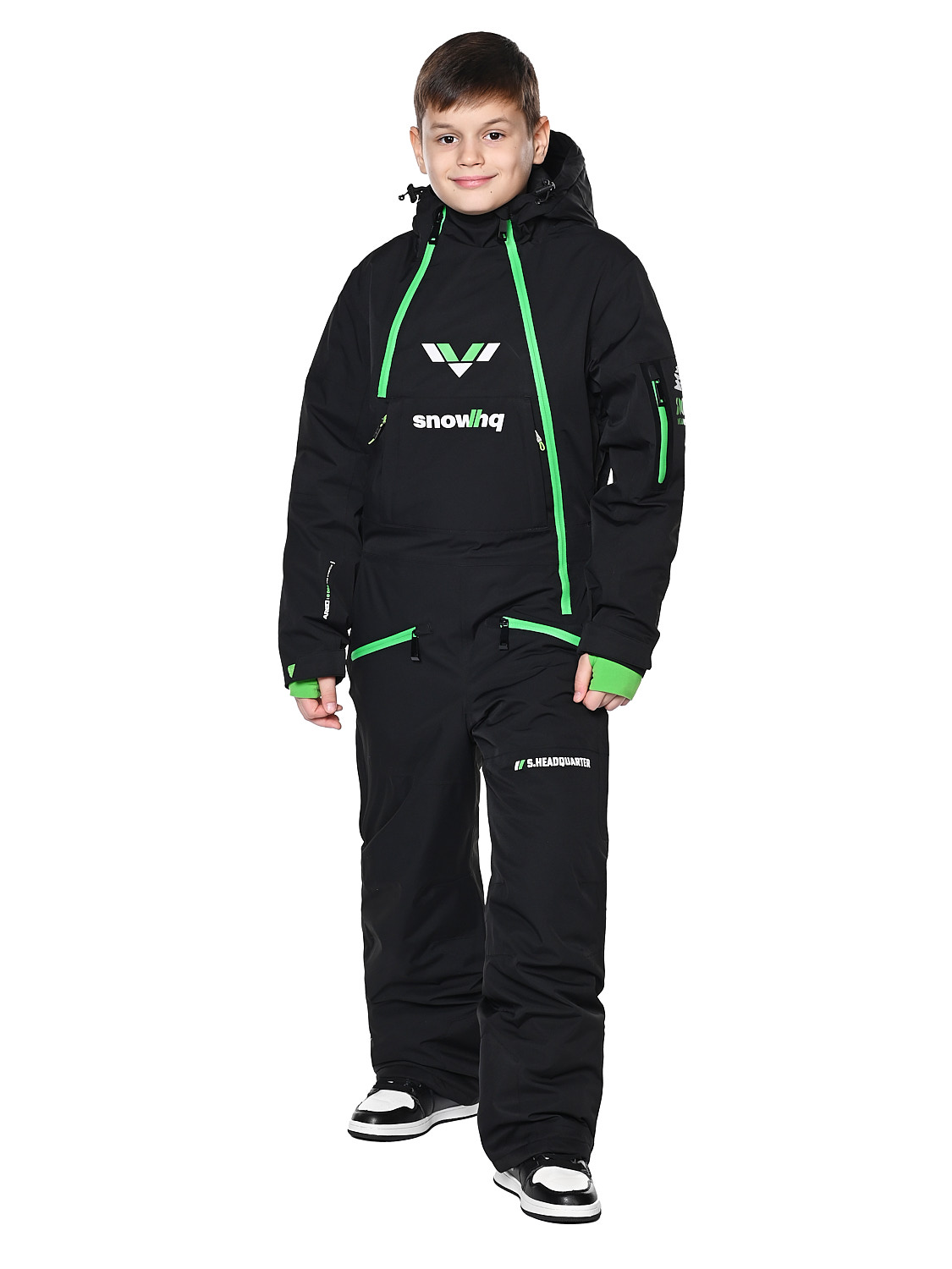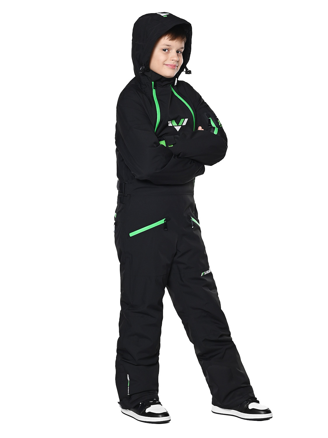 Детский горнолыжный комбинезон- идеальный вариант для активных игр, прогулок, занятий спортом. Он оснащен водонепроницаемой и дышащей мембраной, уникальным современным синтетическим утеплителем Тинсулейт-очень теплым, гипоаллергенным, долговечным и простым в уходе. Рассчитан на температурный режим от +5 до -30 градусов. Практичная и удобная модель с проклеенными швами, водоотталкивающими молниями и регулировкой липучками. Комбинезон полностью защищает от попадания снега внутрь благодаря своим конструктивным особенностям. Имеет не съемный капюшон на регулирующем шнурке, 4 прорезных наружных кармана, регулируемые подтяжки внутри, на рукавах -манжеты из мягкого трикотажа с отверстием для большого пальца, техническую молнию (бомболюк) между курткой и штанами, вентиляционные карманы для проветривания подмышками и на внешней стороне бедра, защитные гетры по низу штанины. Талия регулируется липучками. Материал верха: 100% Полиэстер.