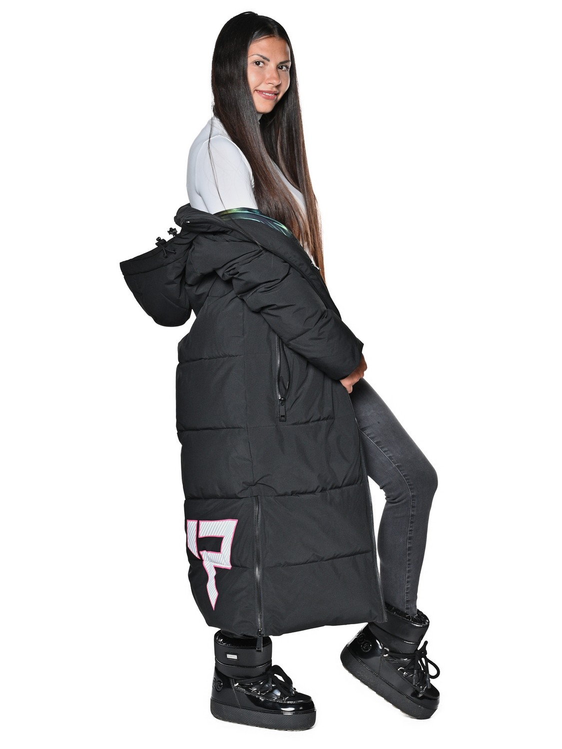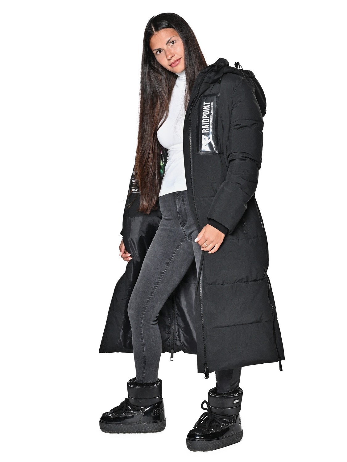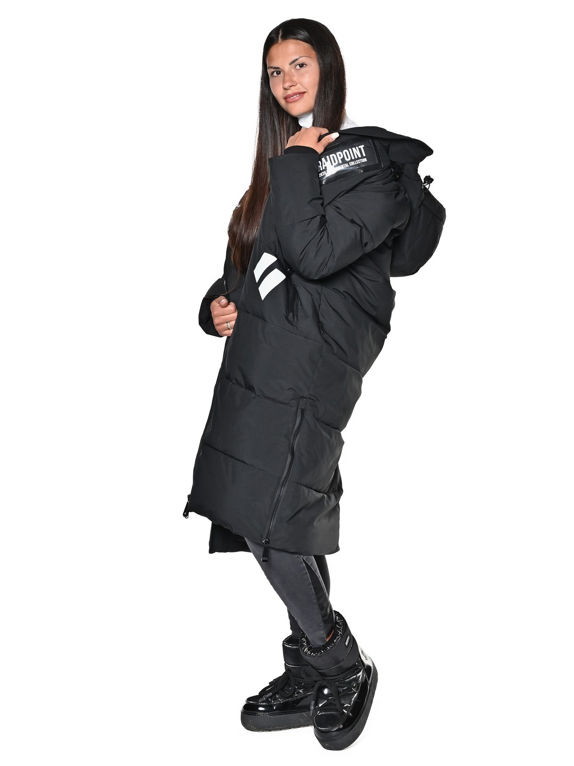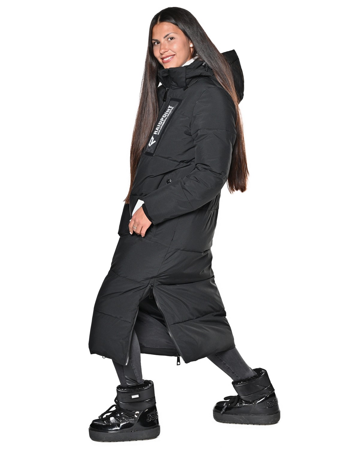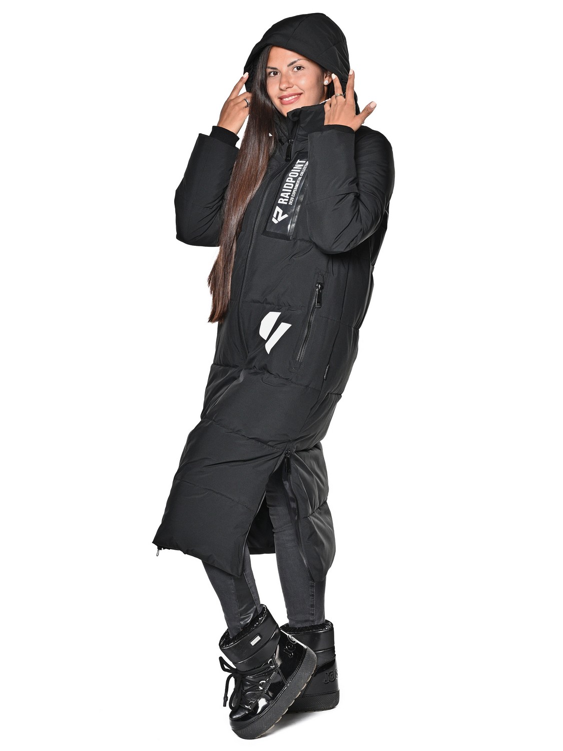 Женское Пальто. Показатели мембраны 10000/10000. Очень практичная и удобная модель с проклеенными швами, водоотталкивающими молниями и регулировкой липучками.